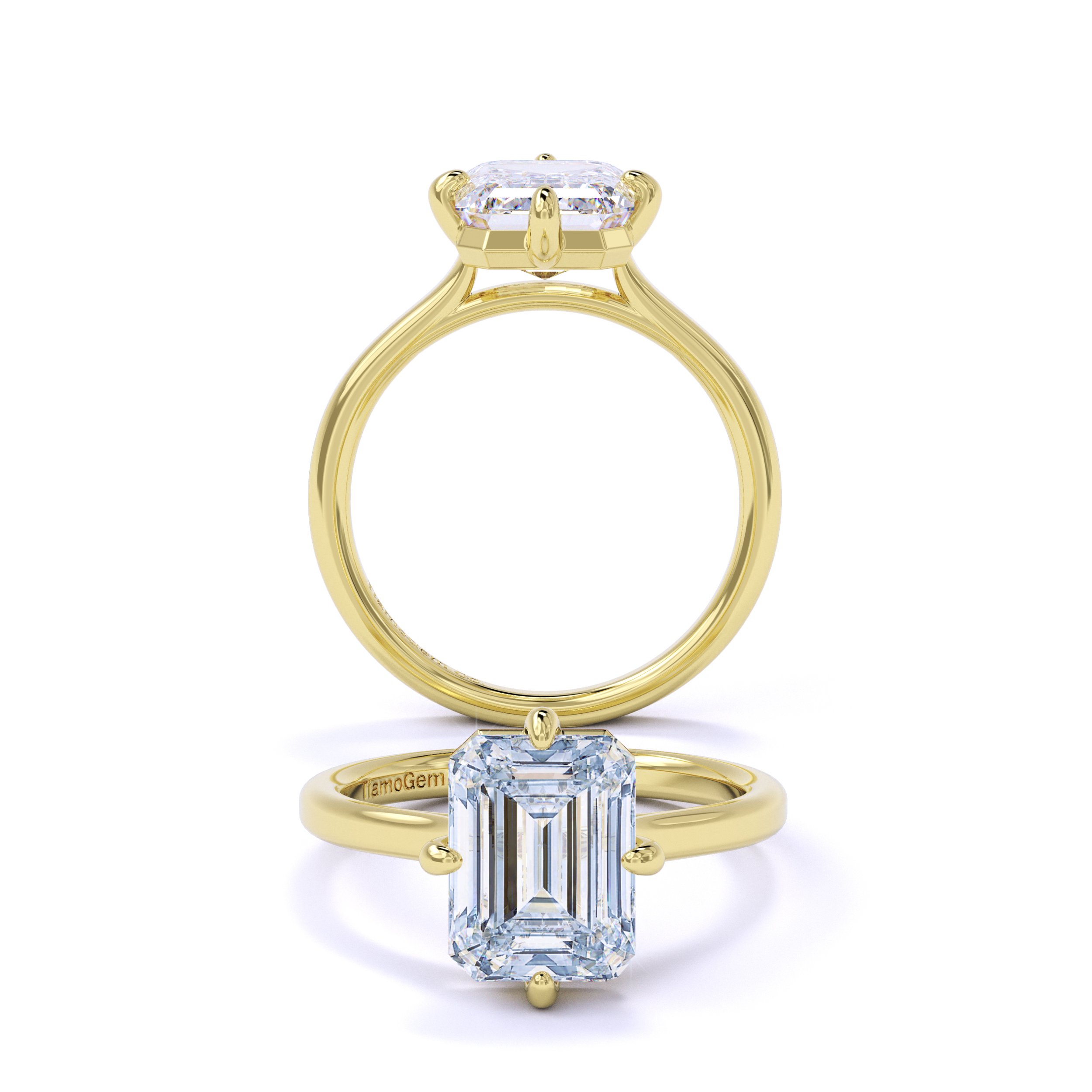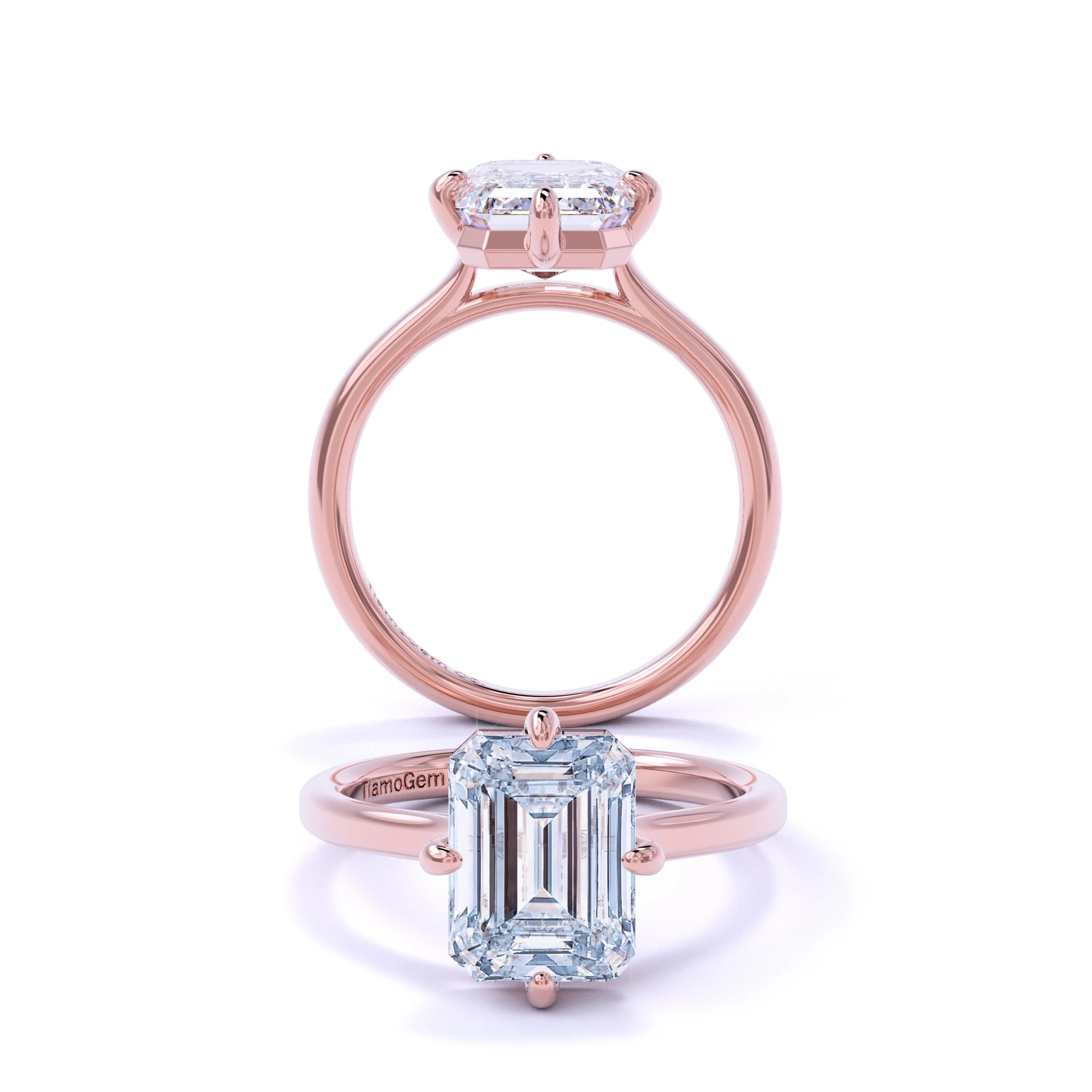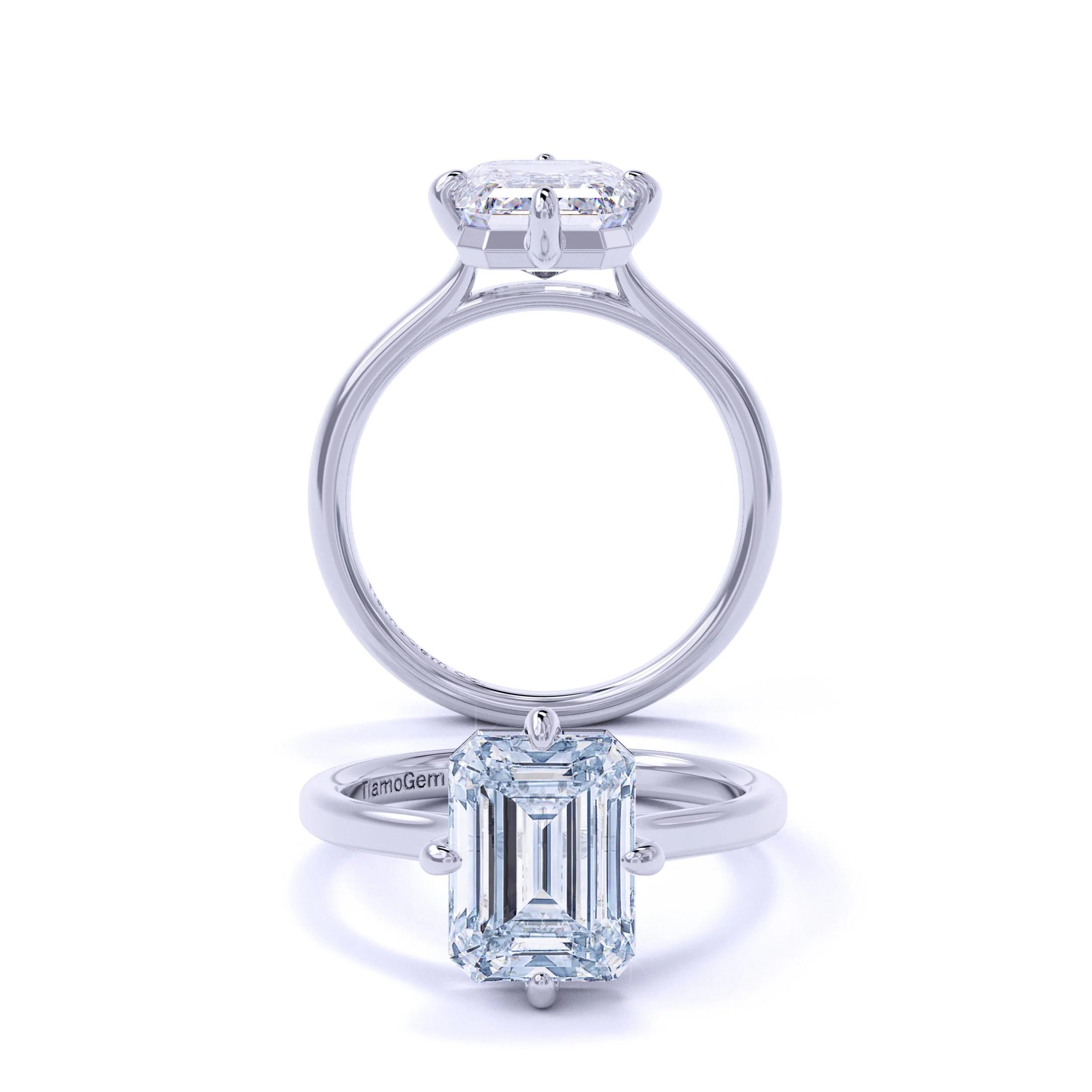 Tracy Tracy is a modern cathedral compass design with a fully open gallery that gives the ring a clean, airy silhouette. The compass prongs create a soft, directional frame around the center, while the lifted cathedral shoulders add height and elegance without feeling bulky. Styled with a smooth, refined band, Tracy blends contemporary structure with timeless sophistication — bold enough to stand out, yet effortlessly graceful from every angle.